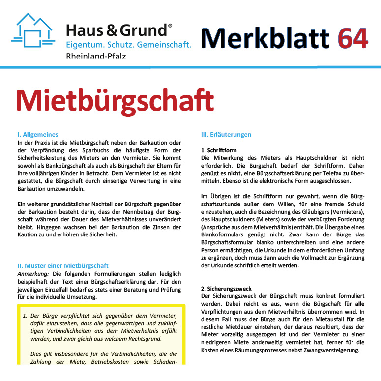 Merkblatt: Mietbürgschaft